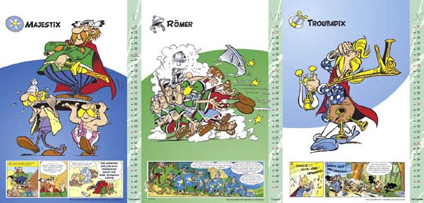 Im Mai 2012 erschien beim Heye Verlag ein Posterkalender mit Asterix-Motiven (Heye-Artikel 22402) für das Jahr 2013. Die Kalenderblätter sind 37 x 53,5 cm groß und bilden jeweils einen Charakter aus der Asterix-Serie und einer dazu gehörenden Szene aus einem der Asterix-Bände ab (Motivauswahl).