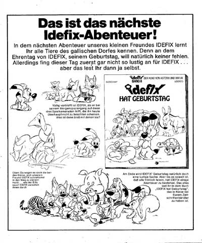 - Band 8: Idefix hat Geburtstag (Obwohl auf der Rückseite des siebten Bandes angekündigt, ist diese Ausgabe sehr wahrscheinlich nicht mehr erschienen)