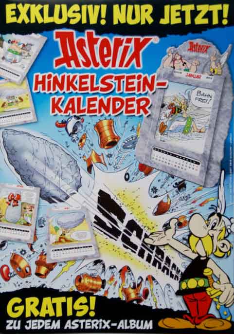 Nachdem seit 2002 keine Kalender mit Asterix-Motiven im deutschsprachigen Handel mehr erschienen sind, veröffentlichte Egmont Ehapa ab 1. Oktober 2010 als Beilage zu den Softcover-Heften einen zweiteiligen Kalender für das Jahr 2011 in Form eines Hinkelsteins mit auswechselbaren Kalenderblättern für jeden Monat mit jeweils einem Hinkelstein-Motiv aus einem Asterix-Abenteuer. Ab 17. Oktober 2012 erschien der Kalender erneut für das Jahr 2013, diesmal mit Abbildungen aus dem Band "Asterix bei den Briten", passend zum Asterix-Film "Asterix & Obelix: Im Auftrag Ihrer Majestät". Alle ungeraden Ausgaben enthielten den jeweiligen Asterix-Kalender in Form eines Hinkelsteins und die Kalenderblätter der Monate Januar bis Juni, alle geraden Ausgaben enthalten die Kalenderblätter der Monate Juli bis Dezember.