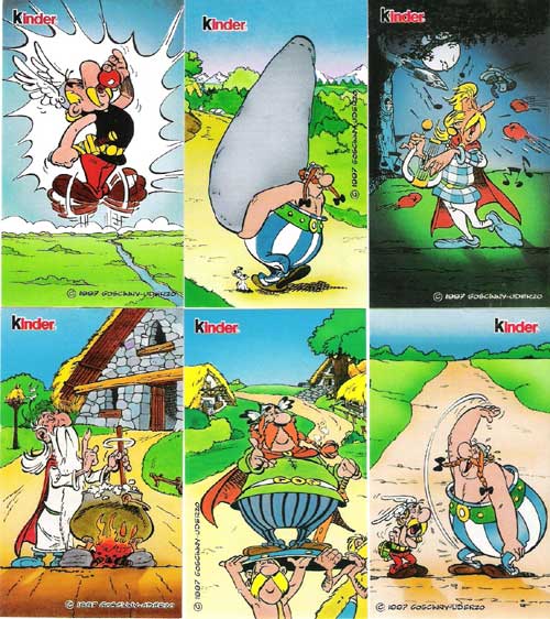 In Österreich erschien 1997 zum Schulanfang eine Sammelbilderserie mit sechs verschiedenen Asterix-Motiven und der Kennung "© 1997 GOSCINNY-UDERZO". Jeweils eines dieser Bilder lag dem Produkt Kinder-Riegel bei, zeitgleich erschien eine Postkartenserie mit teilweise identischen Motiven. Folgende Motive (Motivübersicht) gehörten zu dieser Serie:
