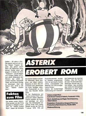 Im Kinothek Verlag GmbH & Co., Hamburg, erschien 1981, herausgegeben von Wolfgang Schrader für die Zeitschrift "Kinothek mit Videoplay", ein Filmjahrbuch mit Fotos von und Hintergrundberichten zu den Filmen des Kinojahres 1982 und vom Herbst/Winter 1981. Darunter befindet sich auch ein ganzseitiger Beitrag zur Kino-Wiederaufführung des Zeichentrick-Klassikers "Asterix erobert Rom" aus den Studios Idéfix von 1976. Das Buch trägt überdies eine Asterix-Abbildung auf dem Titelbild (Abbildung rechts).