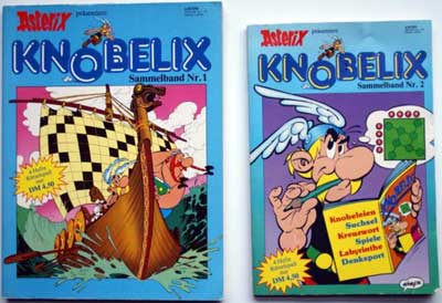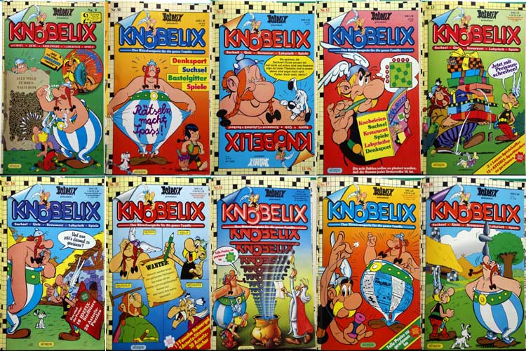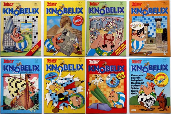 Im Ehapa Verlag erschienen von 1982 bis 1986 unter dem Titel "Knobelix" 18 Hefte mit verschiedenen Quiz- und Denksportaufgaben, Spielen und Rätseln (beispielsweise Suchworträtsel, Kreuzworträtsel, Bastelrätsel, mathematische und lateinische Rätsel, Silbenrätsel und Kreuzzahlrätsel) auf 36 Seiten. Die ersten acht Hefte (Heftmotive Nr. 1-8) waren im Format etwas größer als die zweite Serie (Heftmotive Nr. 9-18). Womöglich war das auch der Grund dafür, dass für die Wiederveröffentlichung der Rätsel im "Knobelix - Das Superrätselbuch" nur die zweite Serie zum erneuten Abdruck kam. In den Heften 6 bis 9 waren zusätzlich Aufkleber enthalten (Motivübersicht): Nr. 6 - "Ein starkes Team!" (Obelix & Idefix), Nr. 7 - "Hut ab vor den Galliern!" (Asterix), Nr. 8 - "Immer in Form!" (Methusalix), Nr. 9 - "Esst mehr Fisch!" (Automatix).