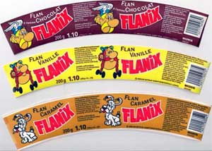 Zudem sind von MIGROS 1992 Desserts unter der Marke "Flanix" in den Geschmacksrichtungen Schoko (Asterix), Vanille (Obelix) und Karamell (Idefix) bekannt, die mit den Motiven der Figuren aus Asterix bedruckt waren (Motivübersicht). Diese Pudding erschienen mit Tiefzugdeckeln, die mit dem Pudding der Schwälbchen AG identisch sind. Inwiefern der Flanix-Pin mit dem Produkt ausgeliefert wurde, ist bislang nicht bekannt.