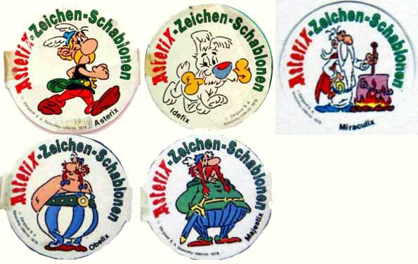 - 1976: bisher bekannt: Asterix; Obelix, Majestix, Miraculix und Idefix (Motivübersicht, Beispielschablone)