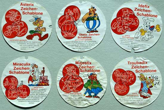 Neben den Nutella Sammelheften befanden sich 1976, 1977 und 1980 im Deckel der Nutella 500-Gramm-Gläser jeweils eine Zeichenschablone, womit sich eine Figur aus der Asterix-Serie zeichnen ließ. Die Schablonen von 1977 und 1980 sind in zwei verschiedenen Größen erschienen, zu 6,8 cm und 5 cm im Durchmesser. Die Serien werden preislich auch unterschiedlich bewertet. 2005 ist zum 40-jährigen Nutella-Jubiläum eine weitere Serie in den 400g und 750g Aktionsgläsern erschienen. In diesen vier Serien waren folgende Schablonen enthalten: