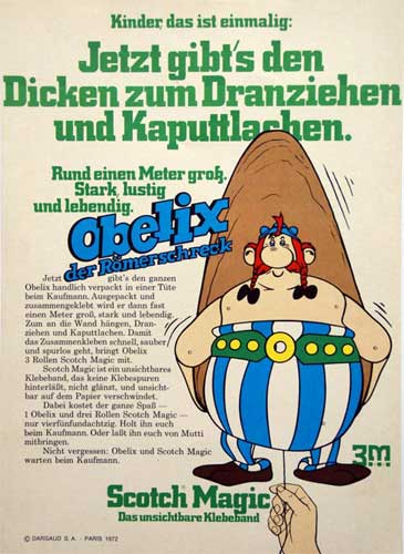 Dieser Hampelmann der Firma Scotch (3M) wurde 1972 in der Erstauflage des Asterix-Albums "Asterix und der Kupferkessel" mit diesem losen Beiblatt beworben. Das Paket enthält neben dem Hampelmann Proben aus dem Scotch-Sortiment (u.a. Klebefilm). Die Firma Scotch bot auch einen Asterix-Hampelmann an.