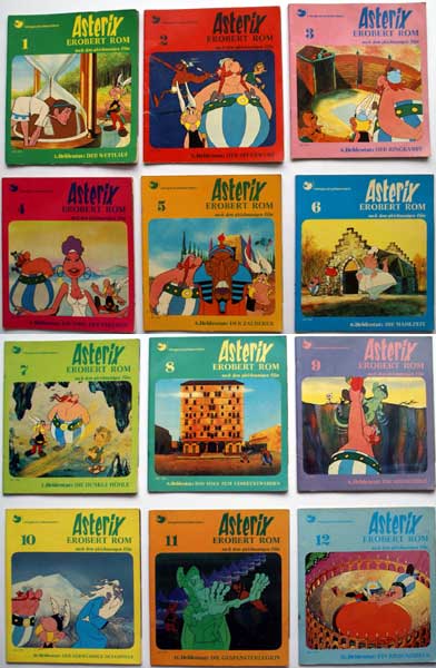 Neben den Asterix Büchlein von Pestalozzi wurde dort 1976 auch eine 12 bändige Reihe im Format 17x17 cm über den Film Asterix erobert Rom herausgegeben. Jeder Band behandelt eine Aufgabe.