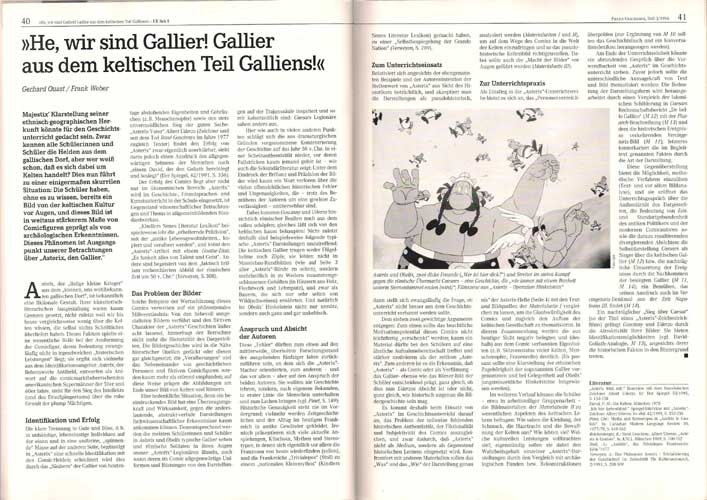 Die Fachzeitschrift "Praxis Geschichte" bietet ergänzendes Lehrmaterial für den Geschichtsunterricht in der Sekundarstufe I & II und erscheint sechs Mal jährlich im Westermann Schulbuchverlag GmbH. Das vergriffene und auch nicht mehr im Verlag erhältliche Heft 3/1996 aus dem Mai 1996 thematisiert unter anderem die Kelten mit einer fünfseitigen Unterrichtseinheit "'Asterix, der Gallier' und die keltische Kultur" auf den Seiten 40 bis 44, bestehend aus dem doppelseitigen Beitrag "He, wir sind Gallier! Gallier aus dem keltischen Teil Galliens!" von Gerhard Quast und Frank Weber und drei Kopiervorlagen für den Unterrichtsgebrauch.