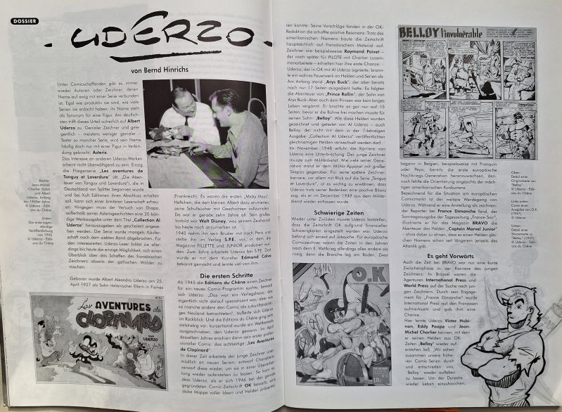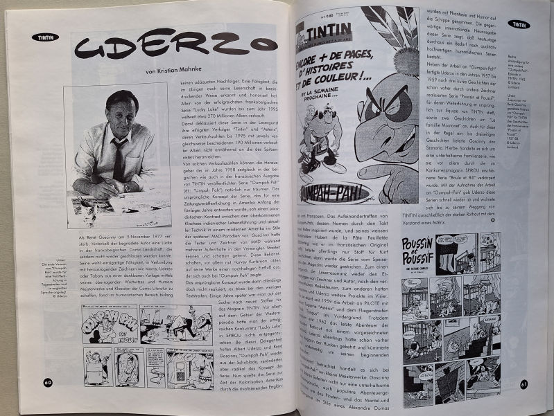 - Reddition 29 "Dossier Tintin Magazin" von 1997. Die Ausgabe enthält einen zweiseitigen Artikel "Uderzo" von Kristian Mahnke. Darin geht es um die Entwicklung des Asterix-Zeichners und sein Frühwerk. Die Zusammenarbeit mit René Goscinny wird thematisiert, wobei die Asterix-Vorgängerserie Umpah-Pah eine herausgehobene Stellung einnimmt. Die Anfänge der Arbeit an Pilote und Asterix werden erwähnt, stehen aber angesichts des Themas des Heftes natürlich nicht im Zentrum.