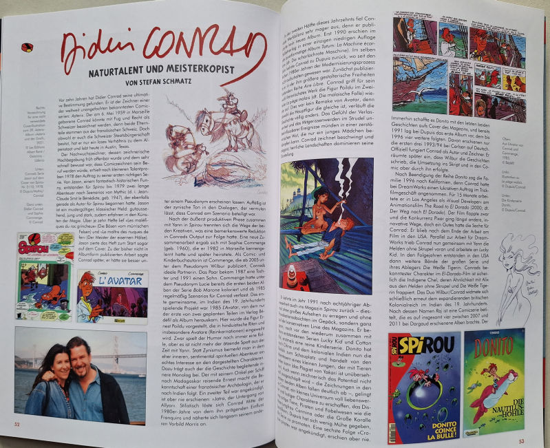 - Reddition 78 "Dossier Die »neue« Marcinelle-Schule" vom Dezember 2023. Diese Ausgabe der Reddition - die gerade frisch erschienen ist - enthält einen dreiseitigen Artikel "Didier Conrad - Naturtalent und Meisterkopist" von Stefan Schmatz, in dem einleitend sowie im Schlussteil auch Didier Conrads Arbeit an Asterix zur Sprache kommt. Dieser Heftbeitrag ist allerdings im Zusammenhang zu sehen mit dem vorangehenden, zehnseitigen Artikel "Yann + Conrad - Enfants Terribles und Erneuerer des francobelgischen Comics", der ebenfalls von Stefan Schmatz verfasst ist. Gemeinsam stellen die beiden Artikel umfangreich das frühe Schaffen und den künstlerischen Werdegang Didier Conrads (der in den Anfangsjahren viel und eng mit Yann zusammengerabeitet hat, später sogar unter dem gemeinsamen Pseudonym "Pearce") dar.