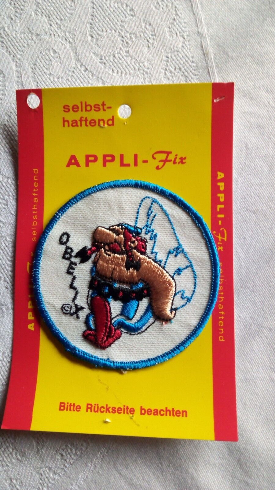 ich habe neulich bei Ebay einen Aufnäher? ersteigert, das Teil ist wie ein Aufnäher gearbeitet, aber selbstklebend und wieder ablösbar. Leider wird kein Hersteller genannt und es ist auch kein Erscheinungsjahr angegeben, ich würde aber schätzen, dass das Teil aus den 70er Jahren ist. Obelix gibt es ebenfalls, die Auktion habe ich leider verpasst,