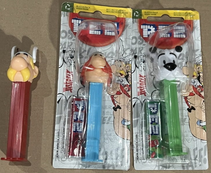ich habe Dank der Hinweise von Henk meine PEZ-Figuren noch einmal gesichtet und dabei festgestellt, dass ich jeweils alle 3 Pez-Spender (Asterix, Obelix und Idefix) jeweils mit einer PEZ-Verpackung und mit drei PEZ-Verpackungen habe.